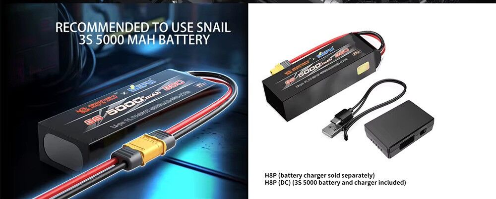 - Control Range: ≥120m with 2.4GHz 8CH transmitter